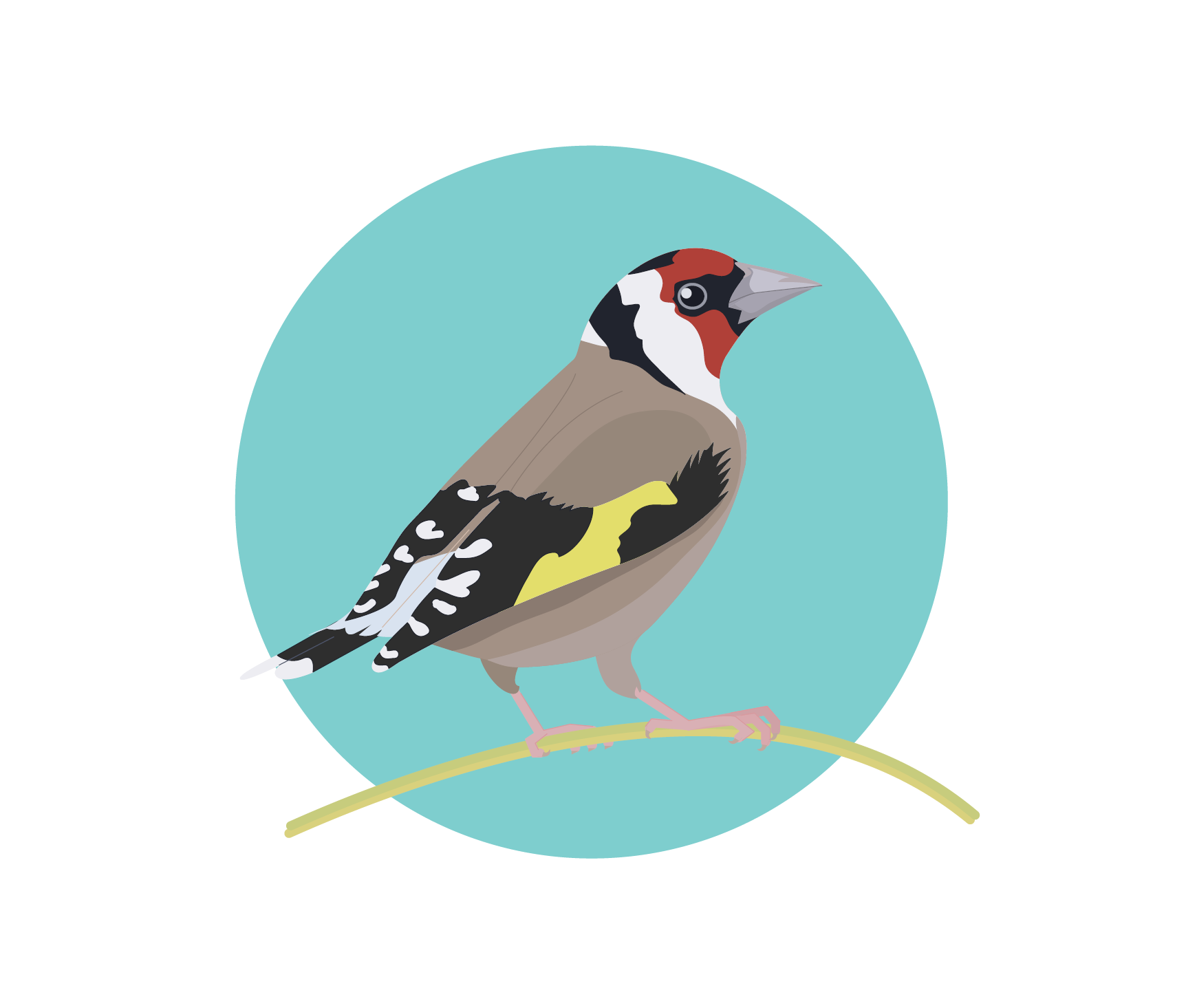 Goldfinch icon in colour with background circle. File stored in PNG format.