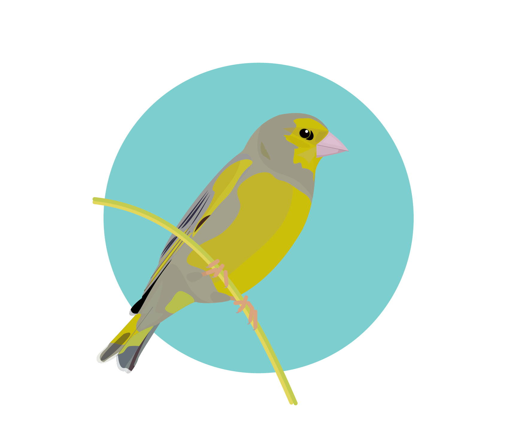 Greenfinch icon in colour with background circle. File stored in PNG format.